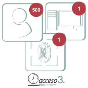 Licencia de 3 años para software Acceso3 TITANIUM / 500 Empleados / 1 reloj / 1 PC / C...