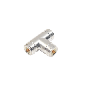 Adaptador en T, de Triple Conector N Hembra, Plata / Oro / Teflón.