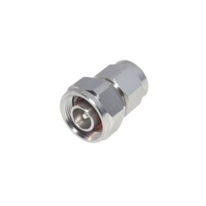 Adaptador en Línea de Conector DIN 7-16 Macho a N Macho, Plata / Plata / Teflón.