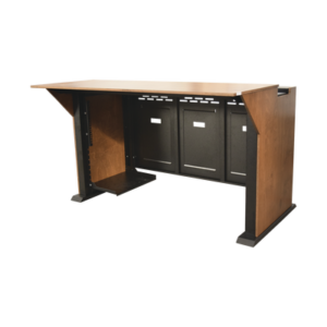 Estación Mobiliaria Profesional de Monitoreo y Control para: Videovigilancia, Acceso, Alarmas, etc., Metal Negro y Madera Tono Claro