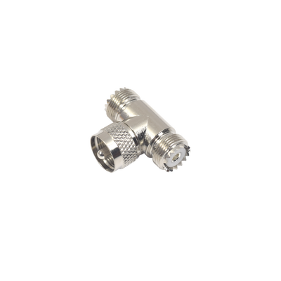 Adaptador T, de Conector UHF Macho (PL-259) a Dble UHF Hembra (SO-239).