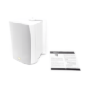 El soporte de montaje de bajo perfil permite un rango de movimiento vertical u horizontal de 120 grados. Disponible en acabados blanco o negro.