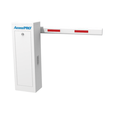 Barrera vehicular derecha compatible con brazo telescópico de hasta 6 metros (No incluido).