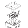 - La carcasa para montaje en superficie tiene dos conductos para cables en las caras opuestas: – 2 x 2 conductos para cables pretaladrados para un diámetro de hasta 21 mm/34 mm (para tubos) – 2 x 4 manguitos de goma con diámetros de hasta 8 mm.