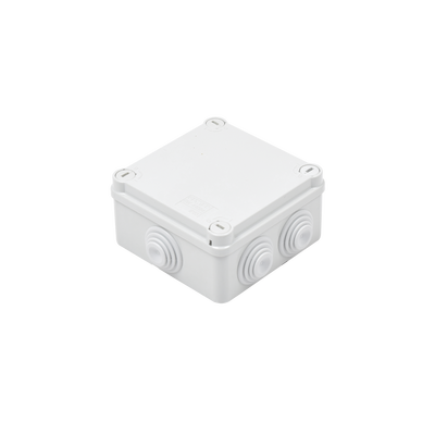 Caja de derivación de PVC Auto-extinguible con 6 entradas, tapa y tornillo de media vuelta de 1/4″, 100x100x50 MM (Medidas internas, mayor área permisible para el cable, Para exterior (IP55)
