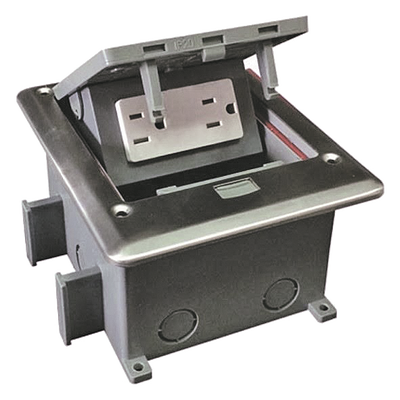 - Caja de piso, alimentación eléctrica para equipo de telecomunicaciones y cómputo, con propiedades resistentes al agua