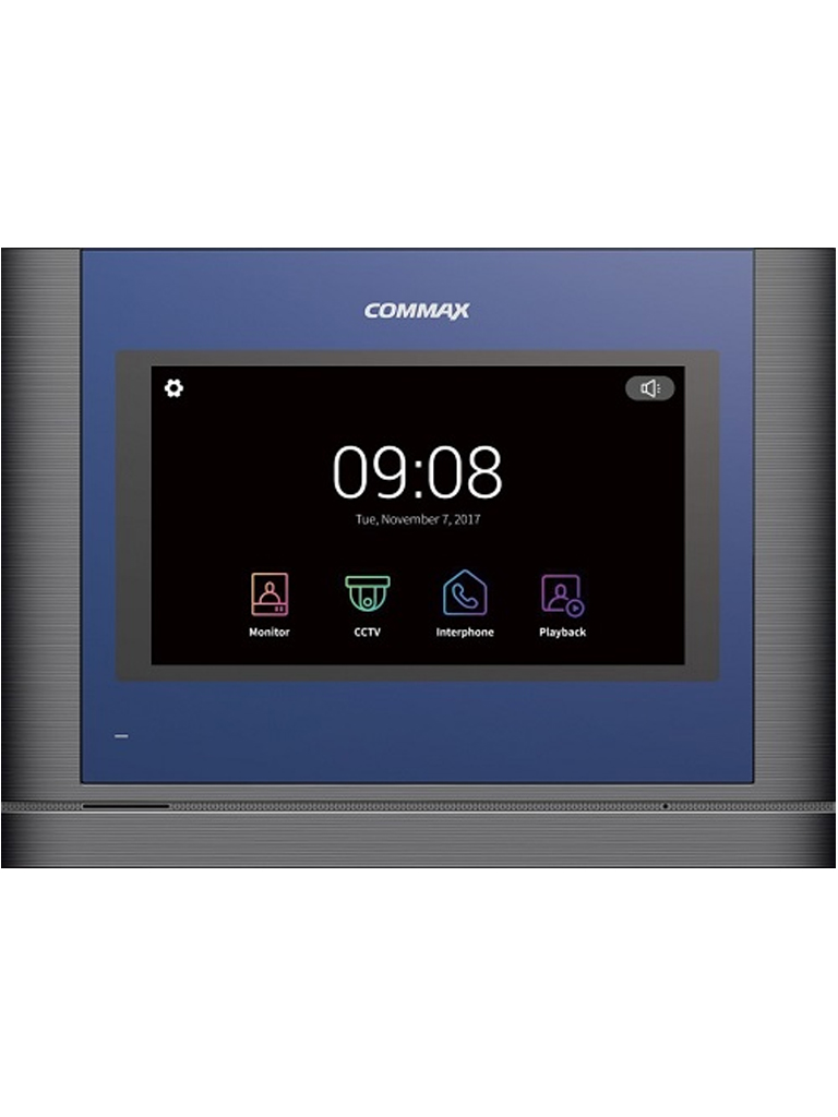 Commax CDV-704MA, es un video portero sin un auricular (manos libres). Tiene a bordo 7 pulgadas (17.78 cm) de pantalla LCD TFT con retroiluminación LED, teléfono con pantalla táctil, sin microteléfono (manos libres). Muestra fácilmente una imagen rica. El videoportero le permite comunicarse con el huésped, así como controlar de forma remota la apertura del bloqueo electromecánico o electromagnético en la puerta de entrada.