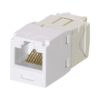 El módulo de conector UTP Categoría 6/Clase E de 8 posiciones, se termina en cable de 4 pares 22 – 26 AWG de par trenzado sin blindaje de 100 ohms y no requiere el uso de una herramienta de impacto. Los módulos de conector UTP usan un método de terminación de movimiento hacia adelante para optimizar el rendimiento al mantener la geometría del par de cables mientras se elimina el destrenzado del conductor. La tapa de terminación esta codificada por color blanco para designar el rendimiento de la Categoría 6 e incluye una etiqueta universal codificada para los esquemas de cableado T568A y T568B.