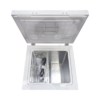 Congelador ideal para aplicaciones aisladas de la red eléctrica, opera en 12 ó 24 Vcd, con lo cual se elimina la necesidad de utilizar un inversor y por consecuente reduce los costos del sistema, así como las posibilidades de falla debido a una menor cantidad de equipos.
