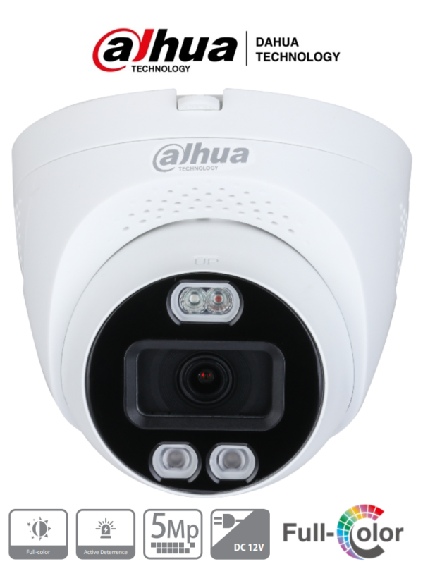 DAHUA HAC-ME1509TQ-PV – Camara Domo TiOC de 5 Megapixeles TiOC/ Disuasion Activa con Luz Roja y Azul/ FullColor/ Lente de 2.8mm/ Luz de 40 Mts/ 1 Salida de Alarma/ Soporta CVI/TVI/AHD/CVBS/ IP67/ #LoNuevo