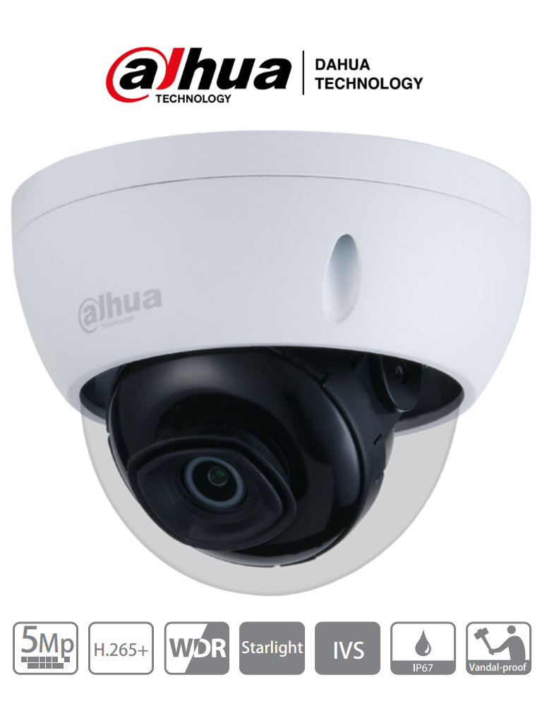 La cámara domo antivandálica HDBW2531E-S-S2 perteneciente a la serie Lite de Dahua, cuenta con una resolución de 5MP recomendada para pequeños y medianos escenarios como residencias, tiendas minoristas y negocios pequeños. Incorpora un lente de 2.8mm que nos permite tener un ángulo de visión hasta 103°,la compresión de video es H265+ para la reducción del ancho de banda y el almacenamiento.