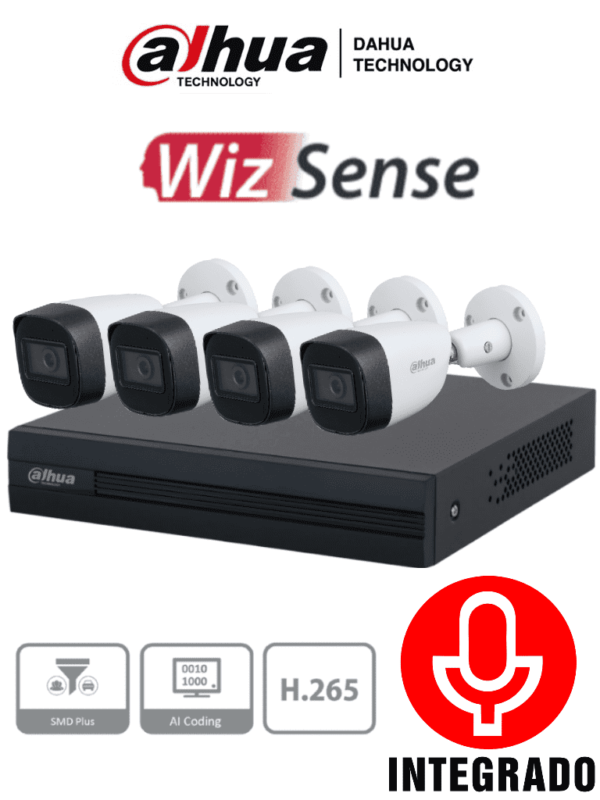Este kit de vigilancia está conformado por el grabador XVR1B04-I, pertenece a la serie WizSense con Inteligencia Artificial, puede reducir las tasas de falsas alarmas y los costos de vigilancia humana, con alarma precisa para personas y/o vehículos. Este grabador soporta 4 canales HDCVI 1080P Lite más 1canal Ip ( 2Mp máximo ) y una codificación inteligente en sus 4 canales.