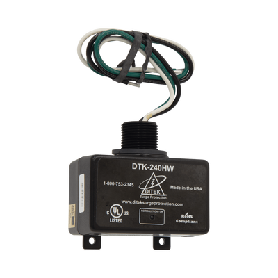 El DTK-240HW de DITEK ofrece protección compacta contra sobretensiones de montaje en paralelo para cargas de circuito derivado monofásico de 240 VCA dedicadas.