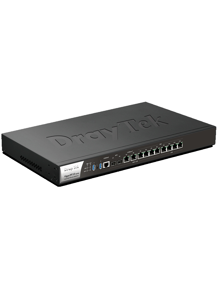 DRAYTEK VIGOR3910- Ruteador Multi WAN/ 8 Puertos configurables LAN WAN/ 2 x SFP+ 10Gigabit/ 2 x RJ45 2.5Gigabit/ 4 x RJ45 1Gigabit/ 4 Puertos LAN RJ45 Gigabit/ 500 Túneles VPN/