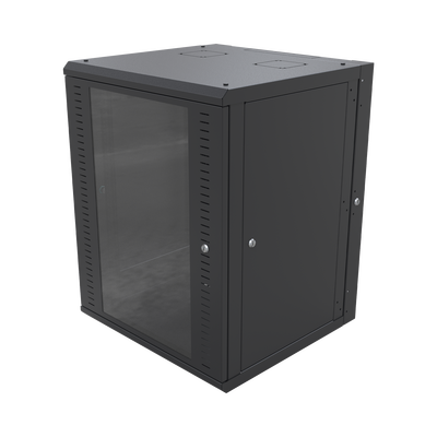 Gabinete Abatible de Pared (Con Marco Trasero) con Rack 19″ de 24 Unidades. Ventana de Cristal Templado.