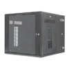Gabinete de montaje en pared construido en acero, soporta 12 unidades de Rack para equipos de red activos o pasivos. Cuenta con paneles laterales totalmente desmontables y esta diseñado para permitir el control de clima adecuado para uso con diversos equipos de red, así como Switches de alimentación remota (PoE) y fuentes de alimentación ininterrumpida (UPS).