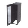 • Puerta Frontal reforzada con Elegante Vidrio de Seguridad con chapa tipo manija (La puerta es desmontable).