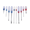 JUEGO DE 10 DESARMADORES DE MANGO DE PLASTICO, 5 PUNTA PLANA Y 5 PUNTA PHILLIPS.