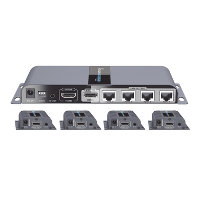 Características Destacadas: EPCOM TITANIUM presenta su gama de extensores HDMI de alta tecnología, y de fácil interconexión en sistemas de seguridad profesional.El TT-714-PRO funciona con 4 receptores de extensión HDMI utilizando cable CAT6 para dividir y extender 1 fuente HDMI a 4 pantallas HDMI por cable CAT6 / 6a / 7 hasta 40 m / 131 pies. La resolución más alta admitida es de 1920×1080 @ 60Hz, y soporta el control por IR, además con tecnología EDID y solo el concentrador requiere de alimentación, el receptor funciona con el transmisor a través del cable CAT6. Solución ideal para exhibición HDMI, video conferencia y centro de espectáculos.