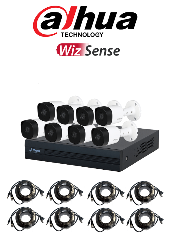 Kit de 8 Canales 2 Megapixeles/ DVR Cooper-I WizSense/ Con IA/ H.265+/ 8 Camaras B2A21 1080p Metalicas/ 8 Ch + 2 IP o Hasta 10 Ch IP/ 4 Ch con SMD Plus/ Busqueda de Humanos y Vehiculos/ Accesorios Incluidos/ Disco duro 2 Tb