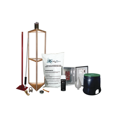 | 1 | KDA05 | Sistema Pararrayo para diámetro de protección de 300m. Incluye: Punta captadora, mástil de aluminio, electrodo (TG1000), acoplador de impedancias (TGC04), compuesto mejorador (H2OHM), brújula y nivel. |