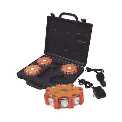 El resistente equipo de carretera de ECCO incluye una potente iluminación de escena con un práctico estuche de carga. La iluminación de las cuatro luces de advertencia es ideal para escenas de emergencia, camiones de trabajo y vehículos de asistencia en carretera. La carcasa de alto impacto garantiza la seguridad en cualquier situación, y los flashes perimetrales durarán hasta 12 horas cuando estén completamente cargados. También se incluyen en el kit AC / DC y adaptadores de cigarrillos.