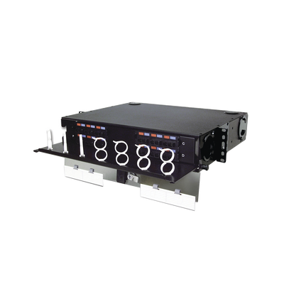 Panel de Conexión de Fibra Óptica (RIC3) Para Rack de 19in, Acepta 4 Placas Quick Pack, Hasta 96 Fibras, 2 UR