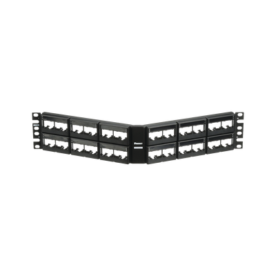 Los paneles de parcheo modulares consisten en un panel de metal con placas frontales moldeadas a presión que se pueden soltar por la parte delantera. Los paneles de conexión aceptan todos los módulos Mini-Com® para aplicaciones UTP, STP, fibra o A / V y deben montarse en Rackso o Gabinetes estándar de 19″. Los paneles de conexión estan disponibles en densidad estándar de 24 y 48 puertos y alta densidad de 72 puertos. Los paneles de conexión angulados se diseñarán en un ángulo óptimo para ayudar a enrutar el cable.