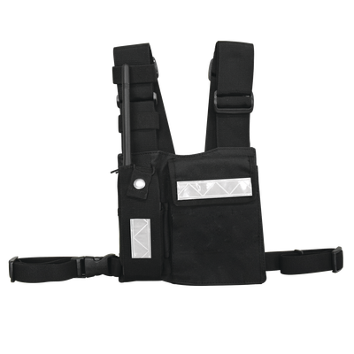 Pechera Universal sin logo con soporte para radio y boligrafo más bolsa con cinta adherente para su seguridad.