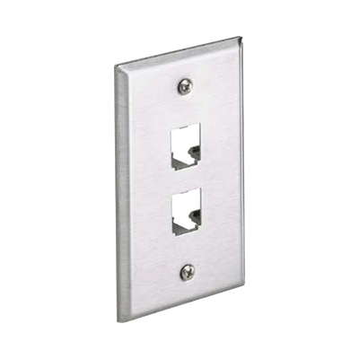 Las placas frontales de acero inoxidable están disponibles en configuraciones de salidas simples de 2, 4 y 6 puertos y varias configuraciones dobles. Cada placa frontal acepta módulos de cobre, fibra y AV que encajan y desconectan sin el uso de herramientas. El material de acero inoxidable se se puede instalar con una caja superficial de ABS de alto impacto para proporcionar una placa frontal duradera con acabado de acero inoxidable.