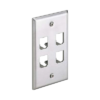 Las placas frontales de acero inoxidable están disponibles en configuraciones de salidas simples de 2, 4 y 6 puertos y varias configuraciones dobles. Cada placa frontal acepta módulos de cobre, fibra y AV que encajan y desconectan sin el uso de herramientas. El material de acero inoxidable se se puede instalar con una caja superficial de ABS de alto impacto para proporcionar una placa frontal duradera con acabado de acero inoxidable.