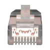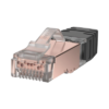 El Plug modular blindado de Categoría 6/Clase E, de 8 posiciones y 8 hilos, se puede terminar en cable de par trenzado blindado sólido o trenzado Panduit de 4 pares, 24-26 AWG, de 100 ohms con un diámetro máximo de aislamiento del conductor de 0.040 pulg. (1.02 mm) y diámetro máximo de forro de 0.250 pulg. (6.35 mm).