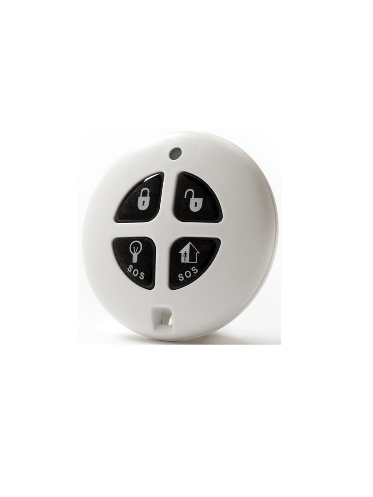 El mando multi-función inalámbrico unidireccional ofrece una manera fácil y cómoda de controlar el sistema de seguridad SecuPlace. Proporcionando cuatro funciones: armado completo, parcial y perímetral, desarmado y pánico.