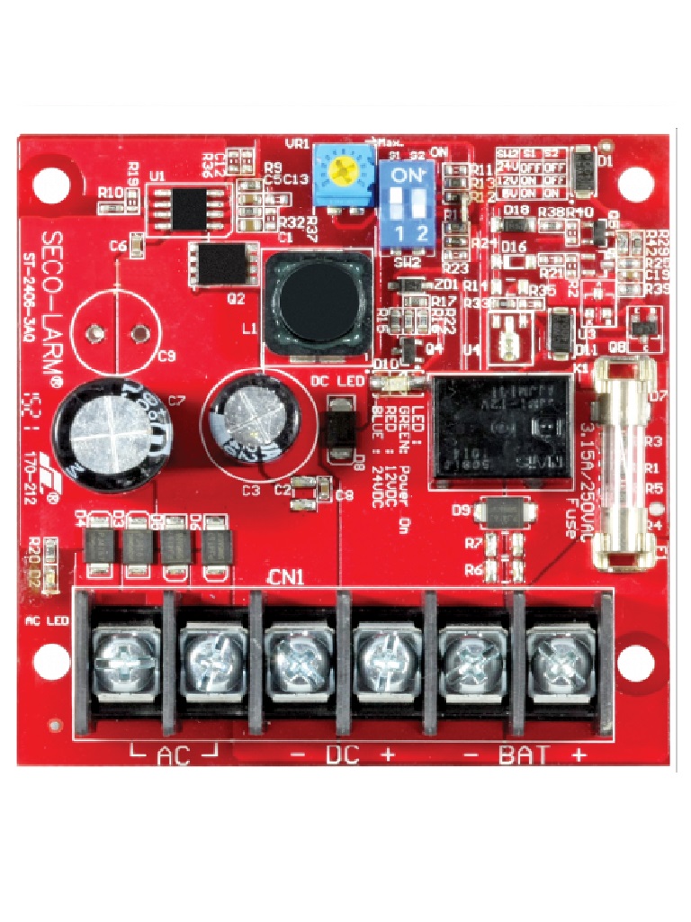 3. El ST-1206-1.5AQ tiene un fusible de 3A. Los modelos ST-2406-2AQ, ST-2406-3AQ y ST-2406-5AQ tienen un fusible de 5A. Los modelos ST-2406- 7AQ y ST-2406-10AQ tienen un fusible de 10A. Use solo los fusibles correctos para evitar cortocircuitos y daños a las fuentes de alimentación / cargadores o al panel de control de acceso a la alarma. (consulte manual de instalación)
