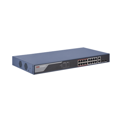 Smart Switch 16 puertos PoE+ 10/100 Mbps, 2 Puerto Uplink 10/100 Mbps.