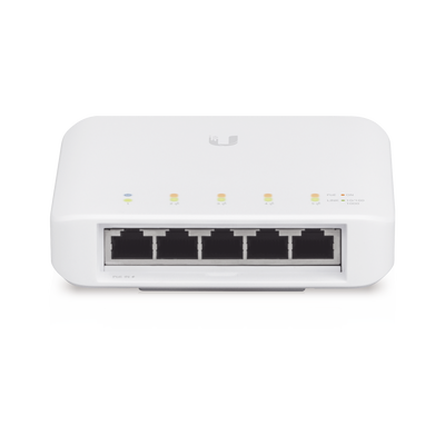 Construya y expanda su red con el Switch UniFi®, parte del sistema empresarial UniFi. El conmutador UniFi, modelo USW-Flex, es un conmutador Gigabit de capa 2 configurable con 802.3af PoE de detección automática. Ofrece 5 puertos RJ45 Gigabit Ethernet, proporcionando 1 entrada PoE y 4 enlaces de salida PoE a sus dispositivos.