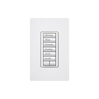 La botonera híbrida montada en la pared se instala en lugar de un interruptor de luz estándar para ofrecer atenuación de la iluminación a la que está conectada, además de los beneficios del sistema de una botonera montada en la pared. Los botones de la botonera pueden programarse para que controlen cualquier otro dispositivo de control de iluminación, además de las cortinas.