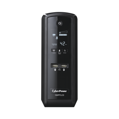 CyberPower CP1500PFCLCD con salida de onda sinusoidal pura protege los sistemas informáticos de rango medio a alto, los servidores y el hardware de red que utilizan fuentes de alimentación de corrección de factor de potencia activo (PFC) convencionales. Diseñados con la tecnología GreenPower UPS ™ para mejorar la eficiencia operativa y minimizar el consumo de energía, los usuarios pueden disfrutar de importantes ahorros de costos de energía con respecto a los sistemas UPS convencionales.