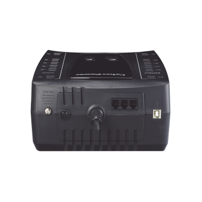 El UPS proporciona respaldo de batería, tomacorrientes protegidos contra sobretensiones y filtro EMI para proteger sus dispositivos. Su puerto incluido RJ11 / RJ45 puede proporcionar protección de línea de datos contra sobretensiones y picos. El indicador LED muestra el estado del UPS. Otras características incluyen batería reemplazable por el usuario y puerto de carga USB. También es compatible con PowerPanel® Power Management Software para realizar un apagado ordenado de la PC.