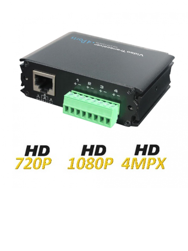 El transceptor pasivo modelo Utepo UTP104PHD cuenta con 4 canales de video que transmite video por medio de cable utp cat5e o cat6, es ideal para cámaras y dvrs de formatos HDCVI o TVI; soporta resolución de 720p, 1080p, 4 MP y hasta 4K. El equipo es compatible con otros transceptores activos o pasivos que soporten formatos HDCVI o TVI.