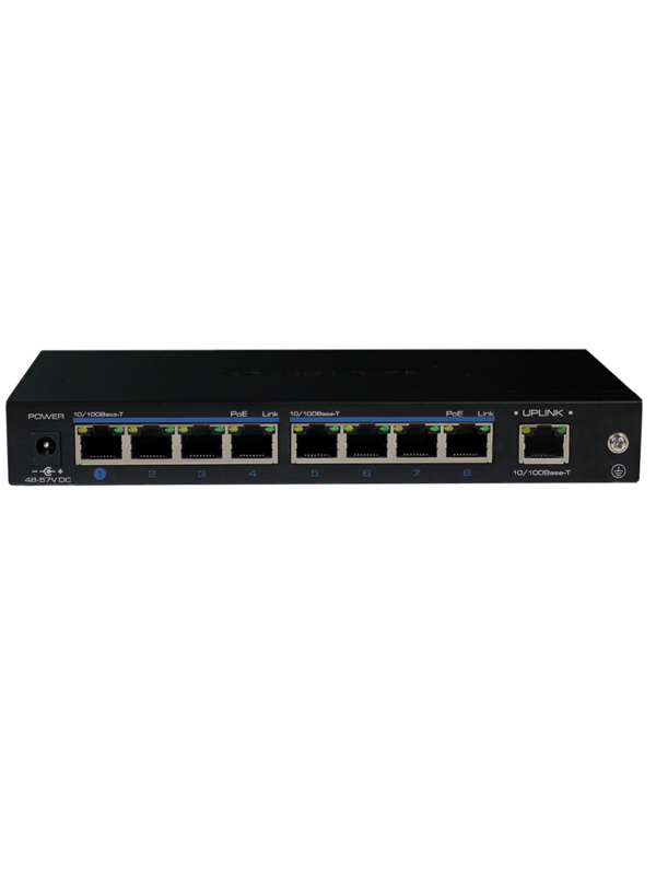 - Puertos: 8 puertos PoE FE RJ-45 10/100/Mbps.