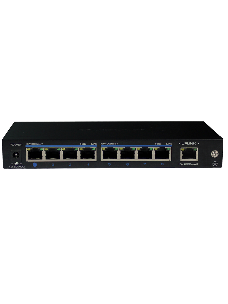 - Puertos: 8 puertos PoE FE RJ-45 10/100/Mbps.