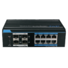 El switch UTEPO UTP7308GE-POE es un dispositivo PoE de capacidad Gigabit. Cuenta con 8 puertos poE 10/100 / 1000Base-T RJ45 para descarga de información y 4 puertos SFP 1000BASE-X para subida de información. Adicionalmente cuenta con hasta 4Mbit caché, soporta transmisión de video de alta definición 4K. Además, los 8 puertos PoE de descarga soportan el estándar PoE IEEE802.3af / at.