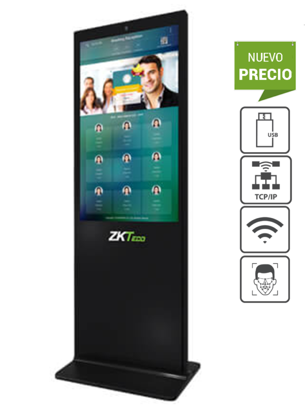 ZKTECO FaceKiosk-V43 – Pantalla publicitaria con control de asistencia facial Luz Visible / LCD de 43 Pulgadas / Touch / Vídeo / Imágenes / Audio / Rostros 5000 / 4G RAM / WiFi / #SinContacto / Licencia de Biosecurity incluida o BIoTimePro