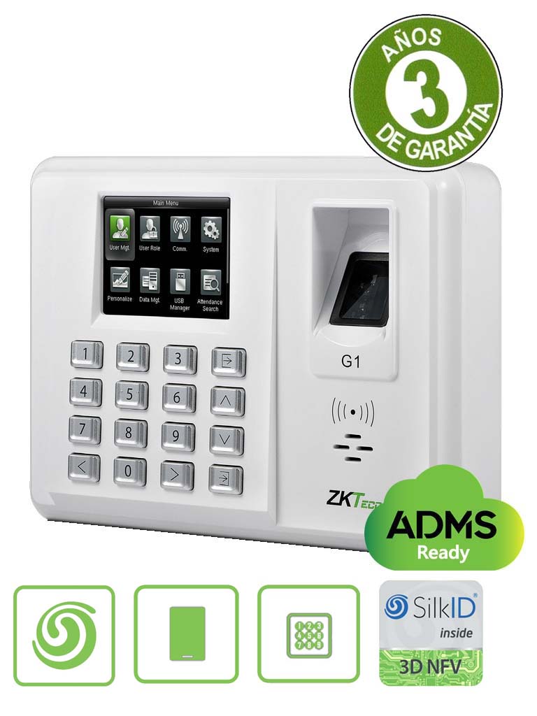 ZKTECO G1MF – Control de Asistencia / 5,000 Huellas / 15,000 Tarjetas MF / 100 000 Registros / TCPIP / USB / Sobre Pedido