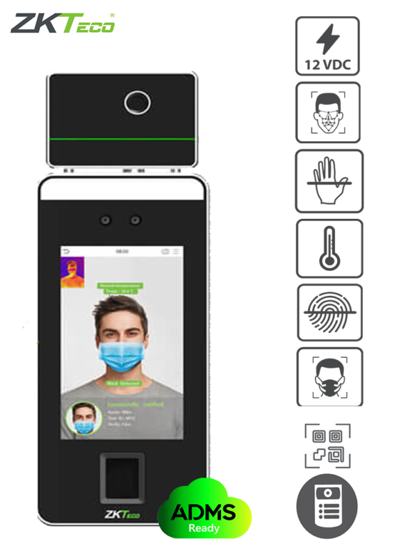 El terminal con detección de temperatura y máscara será una elección perfecta para ayudar a reducir la propagación de gérmenes y ayudar a prevenir infecciones directamente en cada punto de acceso de cualquier local y área pública como hospitales, fábricas, escuelas, edificios comerciales, estaciones durante el reciente problema de salud pública mundial con su cuerpo rápido y preciso, medición de temperatura y funciones de identificación individual con mascara durante la verificación facial y de la palma.